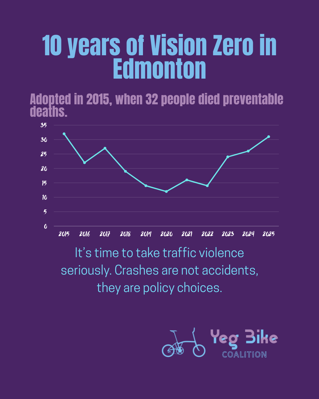 Edmonton is now ten years into Vision Zero. Yet instead of driving traffic deaths toward zero, we’ve...